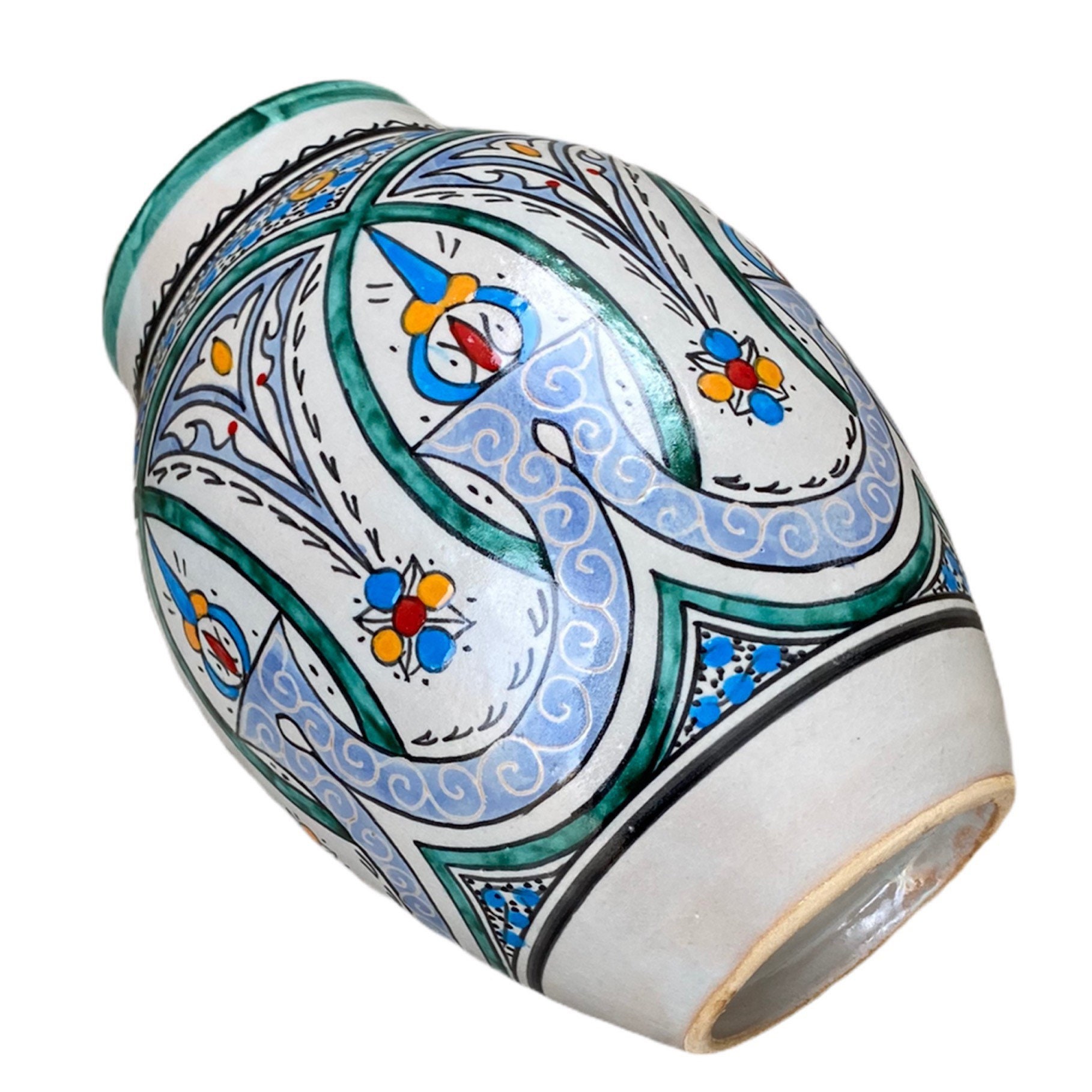 Handmade and hand painted Fes pottery vase, traditional shaped vase, Moroccan vase handmade and hand painted.
